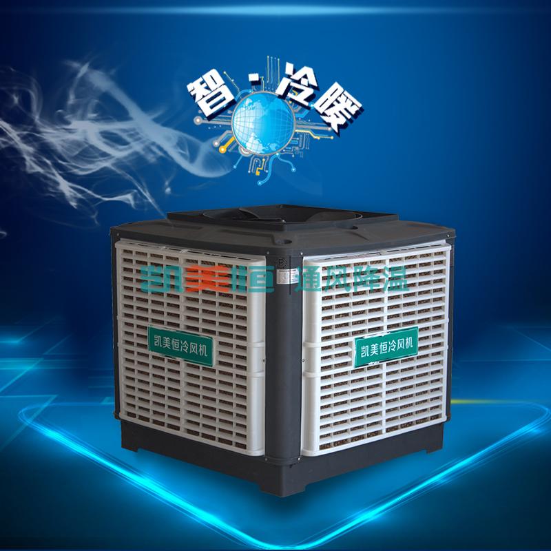 工業型濕簾冷風機使用與維護:冷風機使用前,請檢查濕簾和水池中有無紙屑與塵土等雜物,在每年使用期內應清洗1-2次,加入池中的水應為自來水或其它清潔水,以保持管路的暢通入濕簾的高效率。風機是整的心臟,若發生故障應立即切斷電源,及時請電工修理。安裝時要注意接好地線,以確保人身安全,拆裝葉輪時要小心,以免使葉片變形與箱體相碰。冷風機安裝好后,應將箱蓋栓住,以免刮大風將蓋撤下。浮球閥在水池中水位下限時能自動補水,在水位上限時斷水,若控制失靈,發現池中缺水或溢流時,應及時調整或更換。如發現濕簾供水不足或不均時要檢查池中是否缺水,水泵是否運轉以及供水管路和水泵入水口尤其是噴水管路上的小孔是否堵塞,并檢查噴水高度應大于80MM。由于風機是低壓型的(靜壓、動壓均小),故不能在冷風機出口用加長管道的辦法來遠距離送風。風機和水泵的電路宜集中控制,控制開關應裝在室內。冷風機安裝好后,應將箱蓋栓柱,以免刮大風將蓋掀下。冬季冷風機不用時,要將池內水放凈,并用塑料布或棉布包扎箱體,以免風沙進入室內。